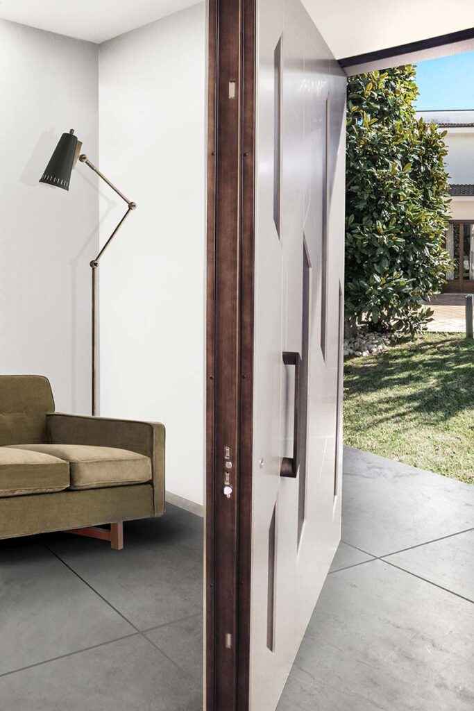 - Para Viviendas Modernas: Acabados en lacados mate, cristales blindados insertados (modelos vetrata) o incluso texturas metálicas que convierten la entrada en una declaración de intenciones.